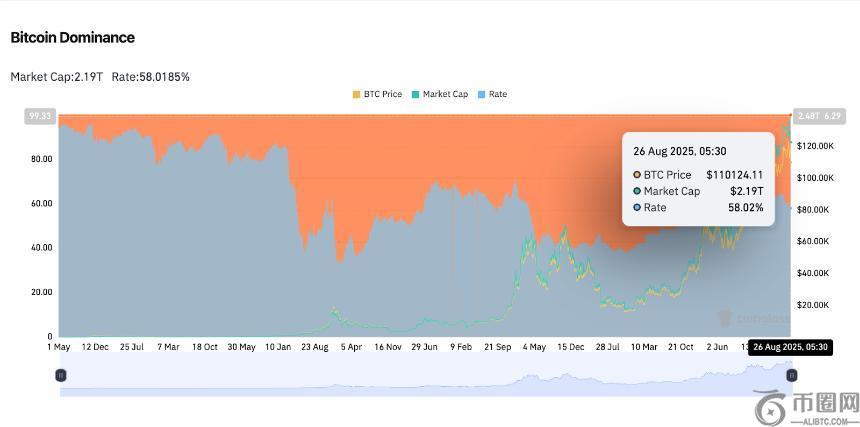 比特币的主导地位维持在58%,在进一步走弱之际保持稳定。这表明风险偏好正在向BTC收缩,但不足以引发反弹。相反,主导地位的稳定凸显了整个市场的防御性定位。