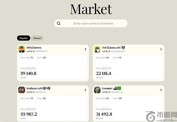 对于用户来说,访问这些房间需要购买钥匙(Keys),而钥匙的购买和交易均需使用 $ROOM 代币。
