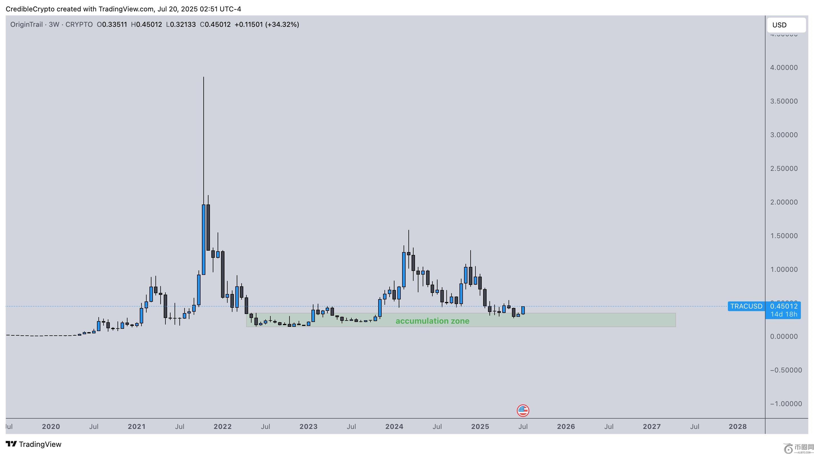 “今天我向现货持有量增加了一些 TRAC,目前仍处于 HTF 积累区。”