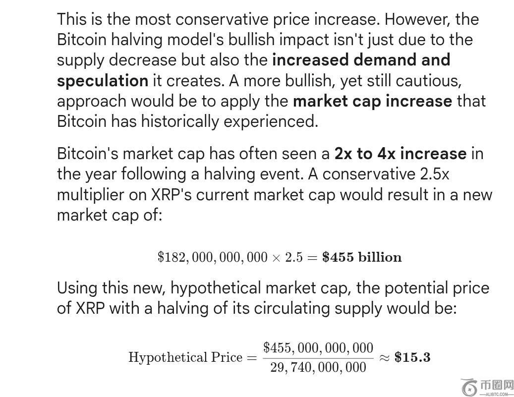 Gemini 在回应中指出,如果 XRP经历了减半切其流通供应量约为 300 亿,而市值留下来同样,价格可能会上涨至关于6.12 美元。