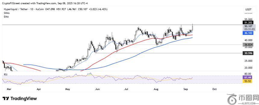 受 Hyperliquid 即将进行的 USDH 稳定币代码投票以及多平台竞相推出 USDH 的推动,Hyperliquid(HYPE)代币周一创下 51.92 美元的历史新高。