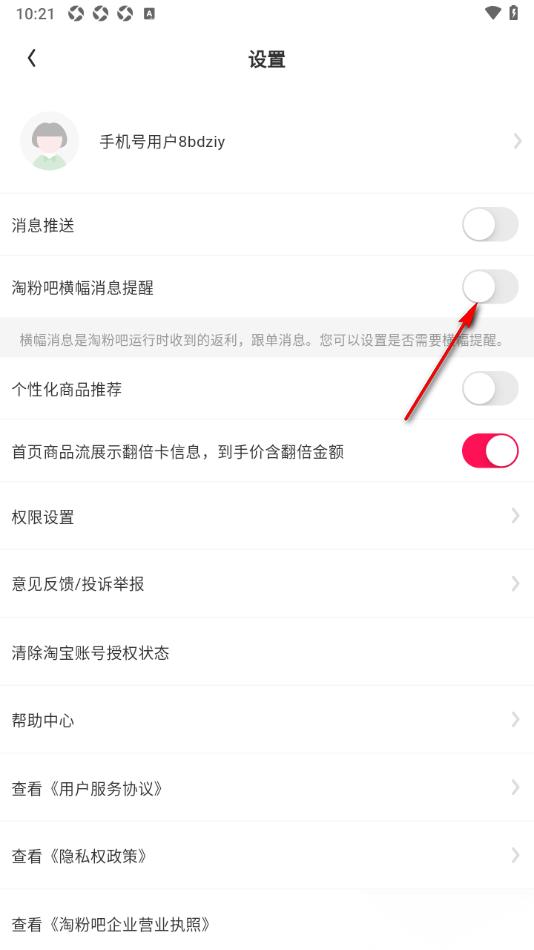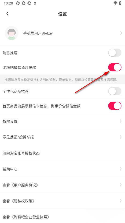 - 09-20淘粉吧APP关闭淘粉吧横幅消息提醒功能的方法