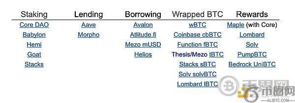 以下列表是我们对BTCfi不同参与者的初步梳理: