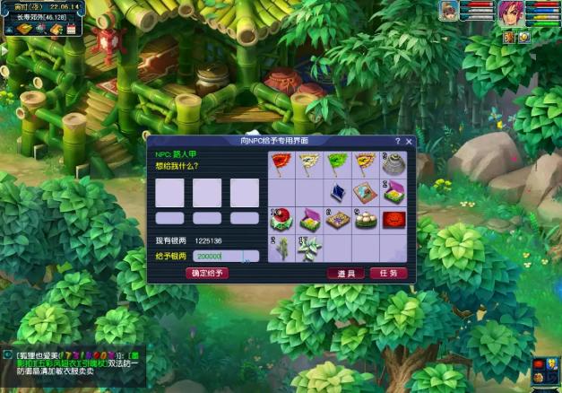 任务二:然后我们来到长寿郊外(46.128)附近,与路人甲对话,路人甲需要我们给予其环装或者资助其20万两购买一把新的,如果遇到索要60、80环装的话,建议大家还是选择给予其20万两银子吧,索要70环装的话,我们完全可以选择给予其环装,能省一半钱哦!