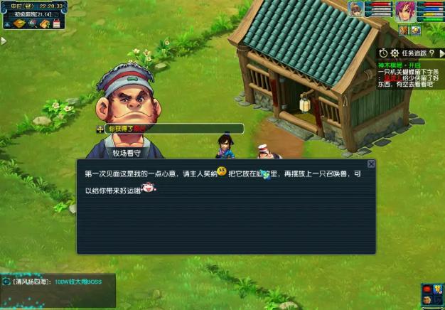 点击庭院里面的牧场看守,牧场建造成功系统会赠送我们一个祭台