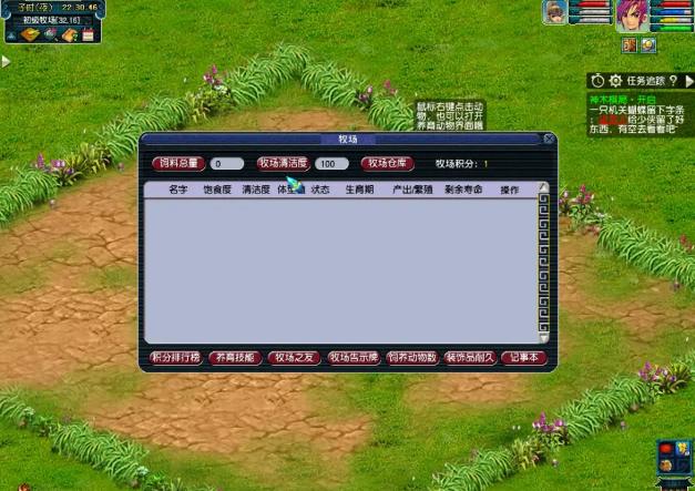 刚建成的牧场有点光秃秃的,什么都没有;刚建成的牧场等级是:初级牧场,后期我们可以通过和玩家买积分物品或者自己养育售卖积分来升级牧场。